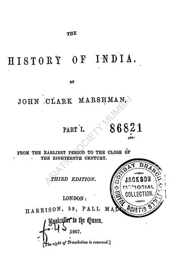 The History of India: From Earliest Period to the Close of Eighteenth Century, Part I
