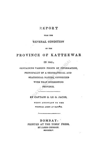Report Upon the General Condition of the Province of Katteewar in 1842.