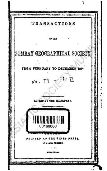 Transactions of the Bombay Geographical Society, from February to December 1846