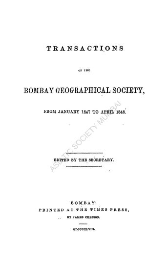 Transactions of the Bombay Geographical Society : From ...