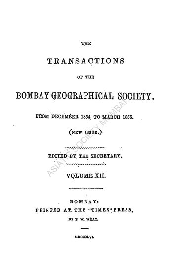 The Transactions of the Bombay Geographical Society, From Dec., 1854 to March 1856, Vol. XII