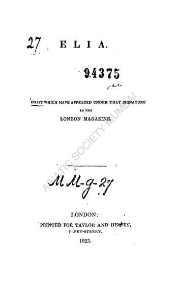 Elia; Essays Which Have Appeared Under That-Signature In The London Magazine
