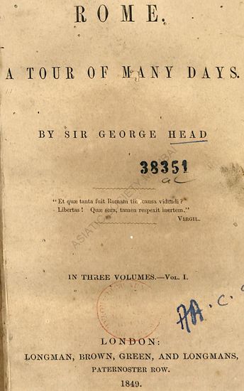 Rome a Tour of many Days in 3 Vols Vol. (I)
