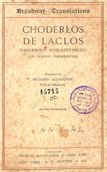 Broadway Translations, Choderlos De Laclos, Dangerous Acquaintances (Les Lisisons Dangereuses), 2nd Impresiion