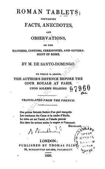 Roman Tablets Containing Facts Anecdotes And Observations On The Manners Customs, Ceremonies And Government Of Rome