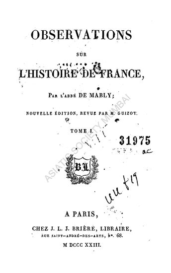 Opservations:Sur Phistoire De France; Rev. By M. Guizot ...