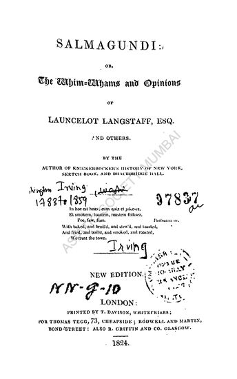 Salmagundi or the whim whams and opinions of launcelot ...