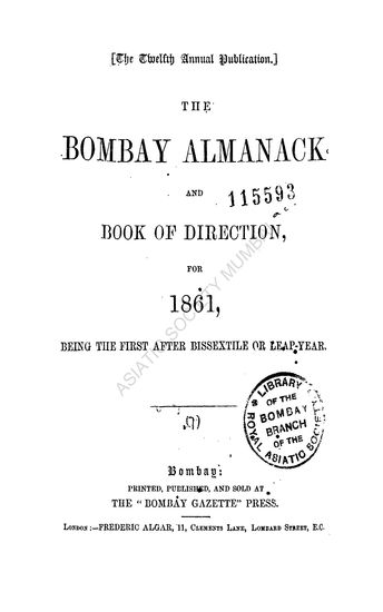 The Bombay Almanack and Book of Direction for 1861,Being the Third after Bissextile or Leap-Year