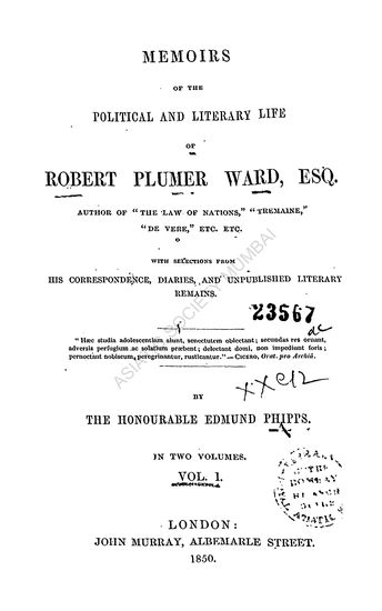 Memoirs of the Political and Literary Life of Robert Plumer Ward, in Two Vols, Vol. I