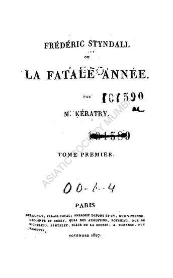 Frederic Styndall Ou La Fatale Annee, (Vol.I)
