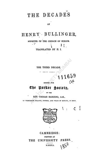 The Decades; Minister of the Church of Zurich (Third Decade)