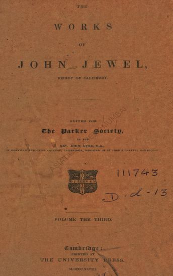 The Works; containing a Sermon Preached at Paul's Cross, Correspondence with Dr. Cole, the Reply to Harding's Answer of private Mass-of communion under both kinds-of players in a strange tongue- of the supremacy-of real presence-of being in many places-of elevations of the sacrament-of adoration of the sacrament