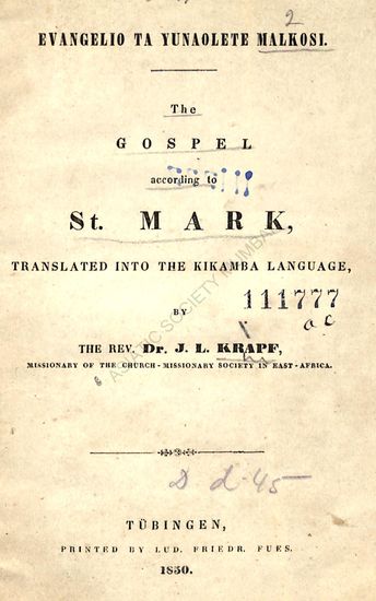 Malkosi, Evangelio Ta Yunaolete; Krapf, J.L.(Tran et al.