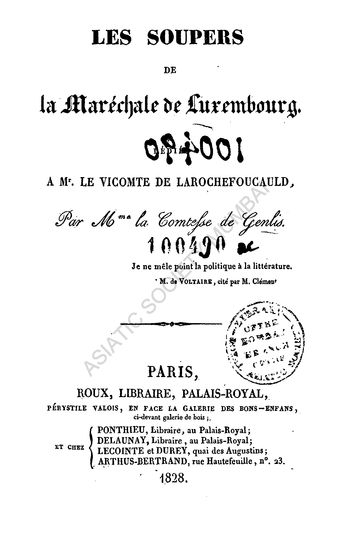 Les Soupers De La Marechale De Luxembourg Lediae A me Le Vicomte De Lar ochefoucauld