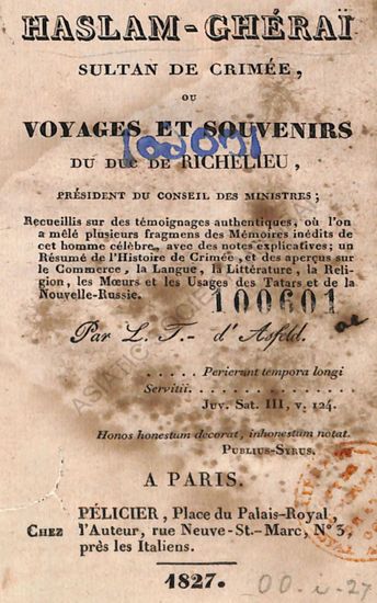 Haslam-Gherai Suttan De Crimee Ou Voyages Et Souvenirs Du Duc De Richelieu