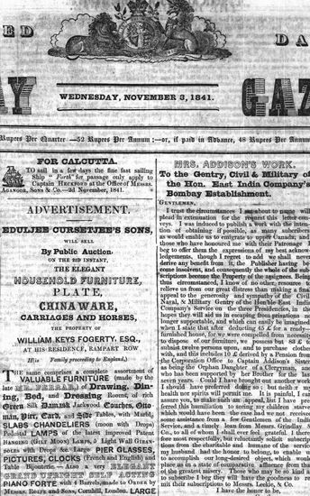 The Bombay Gazette, 3 November 1841