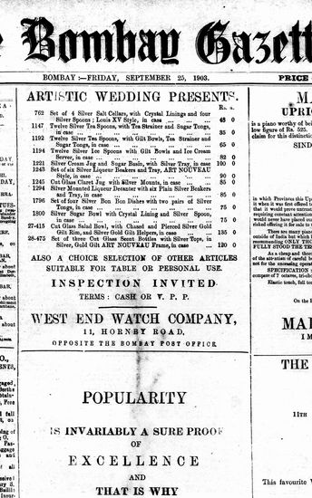 The Bombay Gazette, 3 September 1903