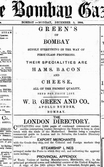 The Bombay Gazette, 5 December 1904