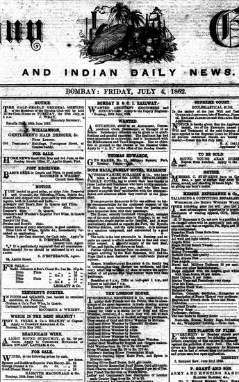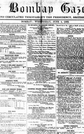 The Bombay Gazette, 4 February 1862
