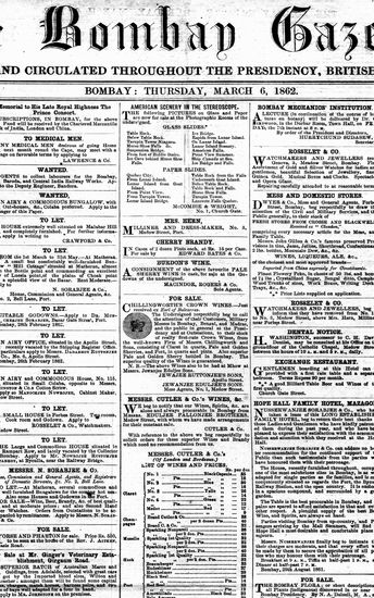 The Bombay Gazette, 1 March 1862