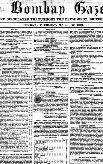 The Bombay Gazette, 6 March 1862