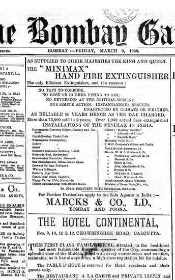 The Bombay Gazette, 9 March 1906