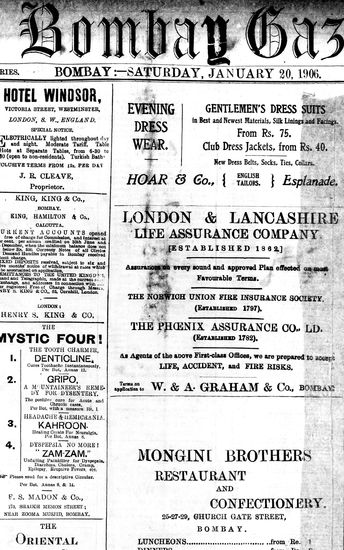 The Bombay Gazette, 20 January 1906