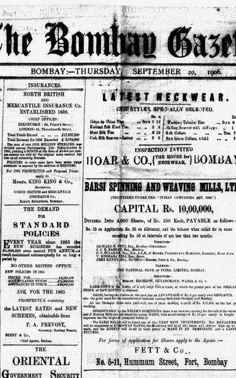 The Bombay Gazette, 20 September 1906