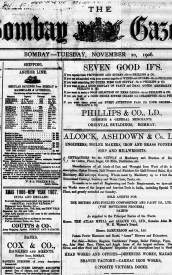 The Bombay Gazette, 20 November 1906