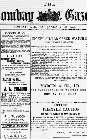The Bombay Gazette, 28 January 1907