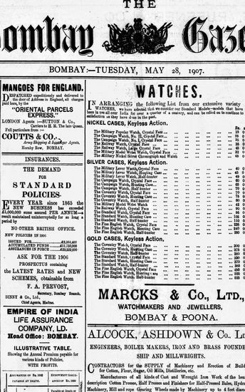 The Bombay Gazette, 28 May 1907