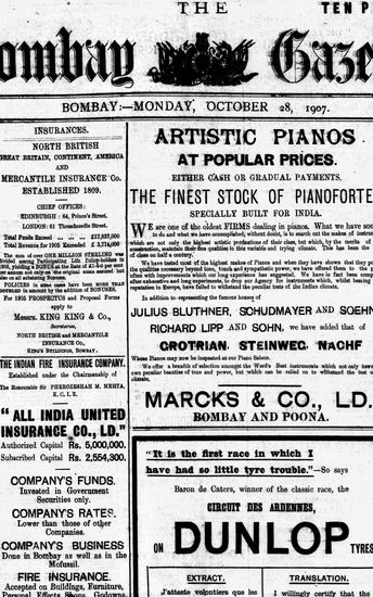 The Bombay Gazette, 28 October 1907