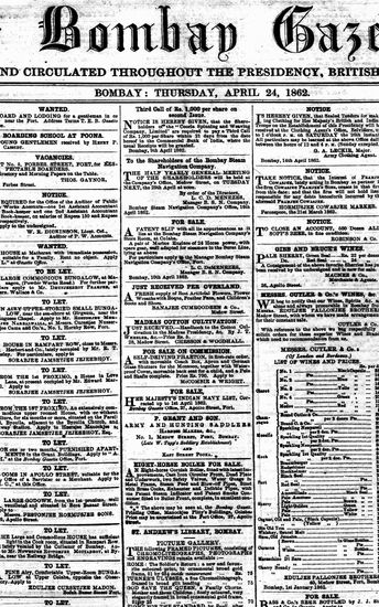 The Bombay Gazette, 24 April 1862
