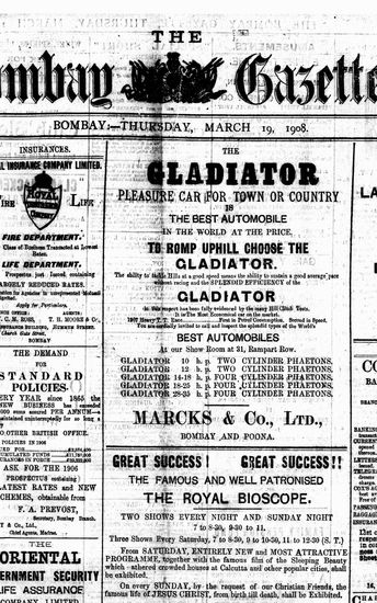 The Bombay Gazette, 19 March 1908