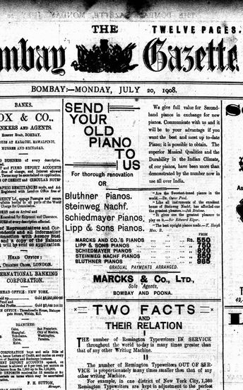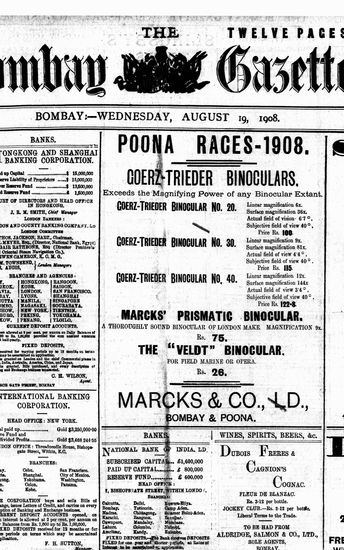 The Bombay Gazette, 19 August 1908