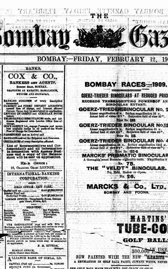 The Bombay Gazette, 12 February 1909