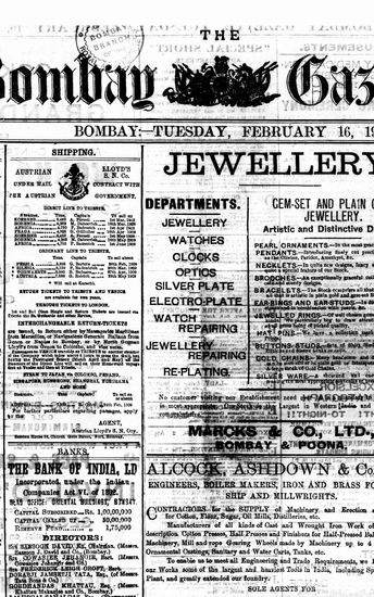 The Bombay Gazette, 16 February 1909