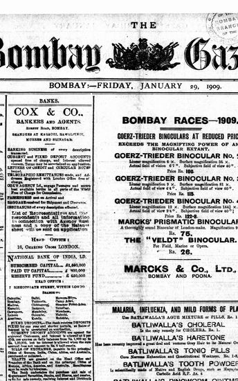 The Bombay Gazette, 29 January 1909