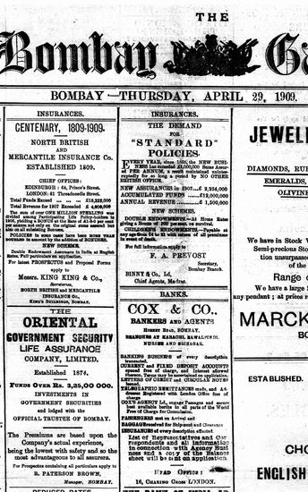 The Bombay Gazette, 29 April 1909