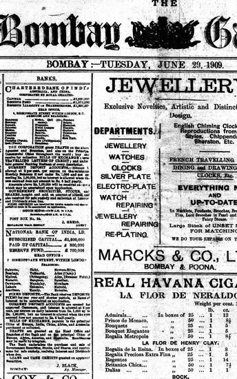The Bombay Gazette, 29 June 1909