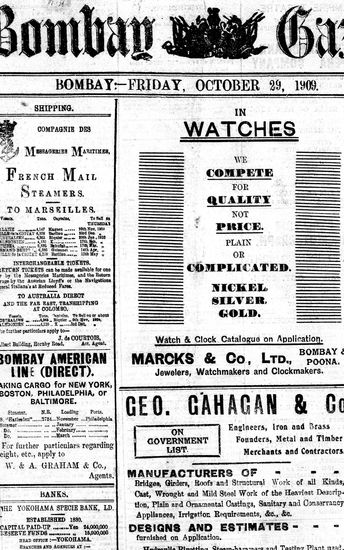 The Bombay Gazette, 29 October 1909
