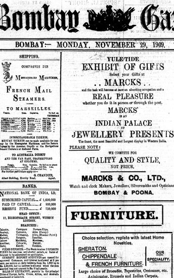 The Bombay Gazette, 29 November 1909