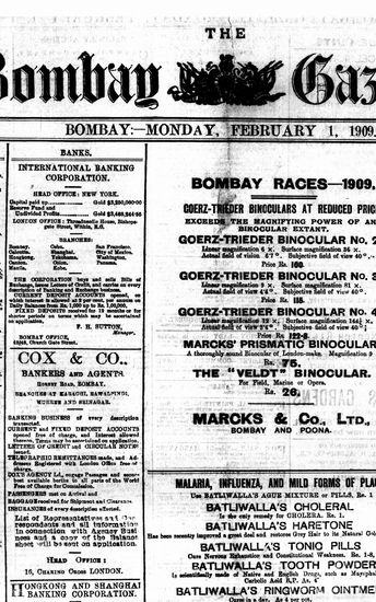 The Bombay Gazette, 1 February 1909