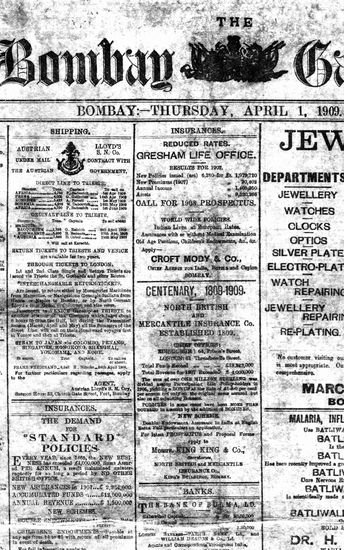 The Bombay Gazette, 1 April 1909