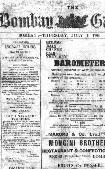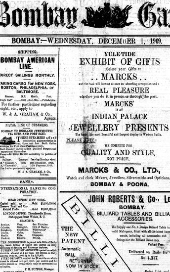 The Bombay Gazette, 1 December 1909