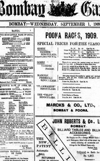 The Bombay Gazette, 1 September 1909