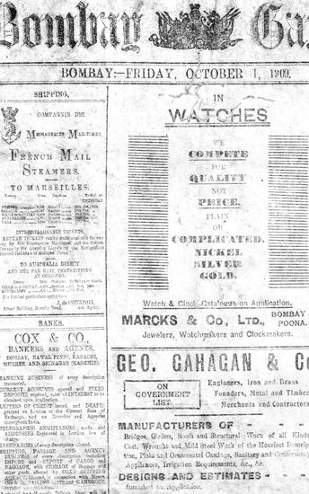 The Bombay Gazette, 1 October 1909