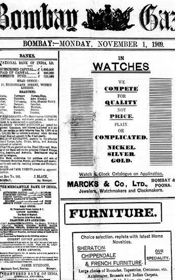 The Bombay Gazette, 1 November 1909