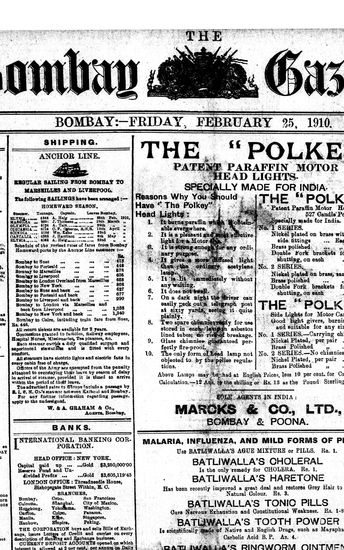 The Bombay Gazette, 21 February 1910
