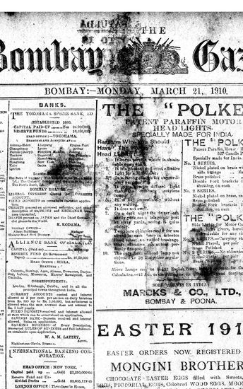 The Bombay Gazette, 21 March 1910